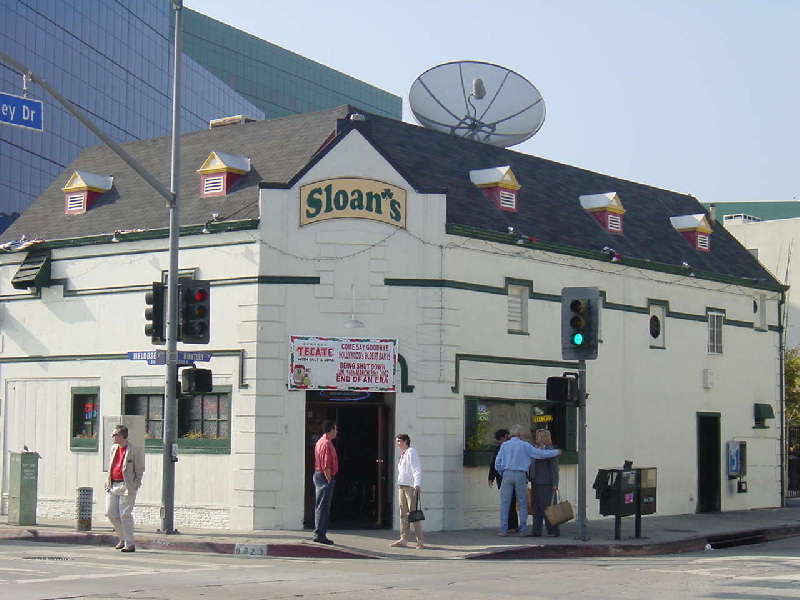 Huntley Dr. と Melrose 通りの角に建つ Slone's。いわゆるアイリッシュ系のバーです。ロサンジェルスでも一番古いといわれる歴史的なこのバーも、時代の流れには勝てなかったのか。。。3月末を持ってクローズすることになってしまいました。
